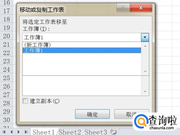 如果我们要在新文件或其他文件复制移动,在移动或复制窗口界面中选择其他工作薄,然后确定。