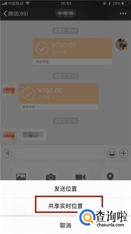 然后点击共享实时位置,如下图所示。