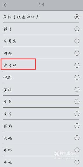 在新弹出的页面里我们可以看到很多通知提示音,选择自己喜欢的那个提示音就可以了,如下图我们选择的提示音是“弹力球”。