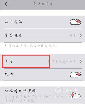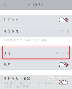 在新消息提醒页面选择“声音与振动”下面的“新消息系统通知”,如下图所示。