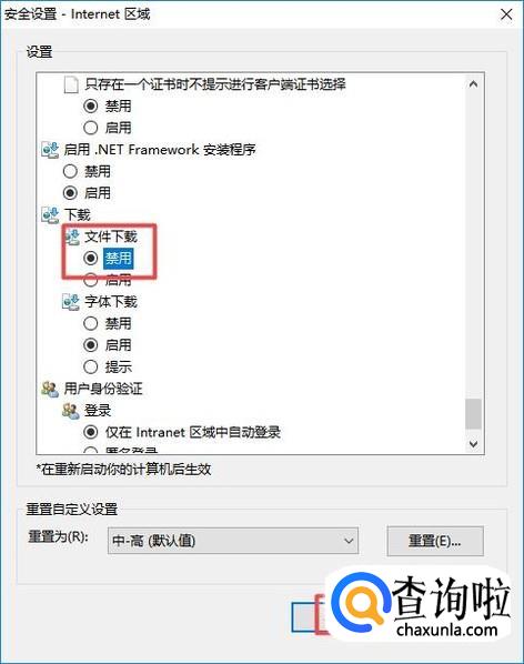 然后我们将文件下载选择禁用,之后我们点击确定就可以了。这样我们就设置好了。