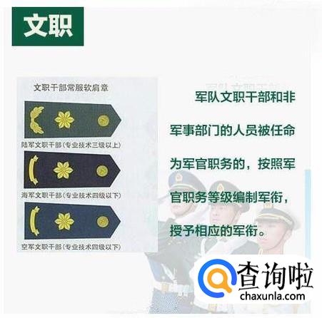 最后是文职人员,按照军官职务等级授予相应的军衔。