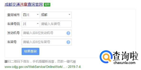 手机查询:在手机应用市场搜索【玩车查违章】,下载安装好打开之后填写出现违章情况车牌号、车辆识别代码后六位、选择车辆种类车架号、发动机号即可查询。