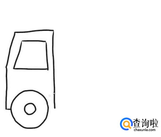 接下来,在其前端画出一个车窗,在最下面画出一个车轮,车轮由一个圆环组成