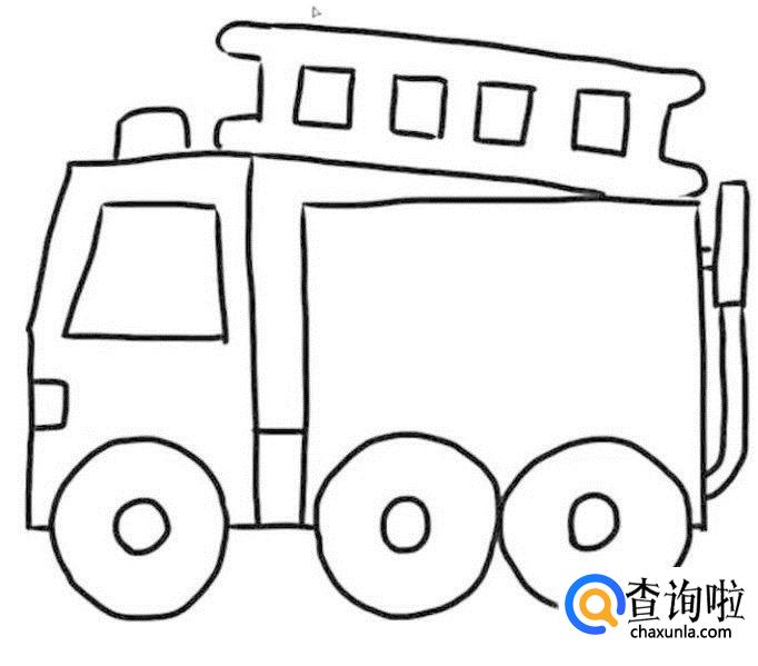在车厢上面画一个楼梯,车厢的后面画出一根消防水管与水枪,就OK了