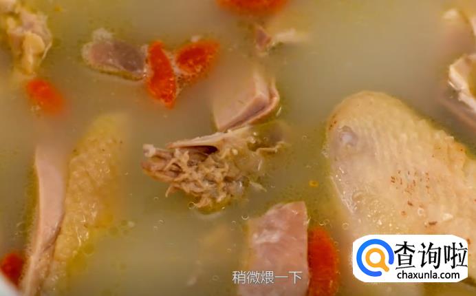 最后,把切好的猪肚和鸡肉放回锅中,重新点火烧开,撒上一小把枸杞,稍微煨一下,就可以盛出喝汤了。喝的时候,可以按照个人的口味再来加盐。