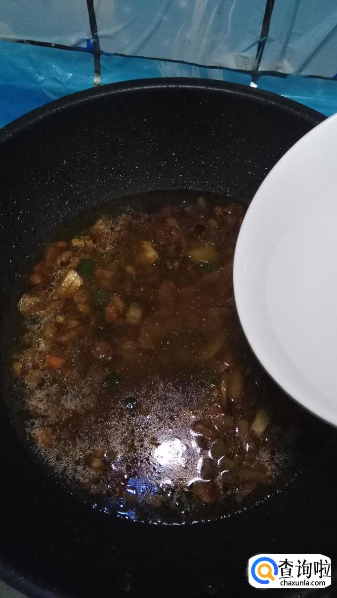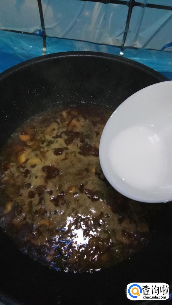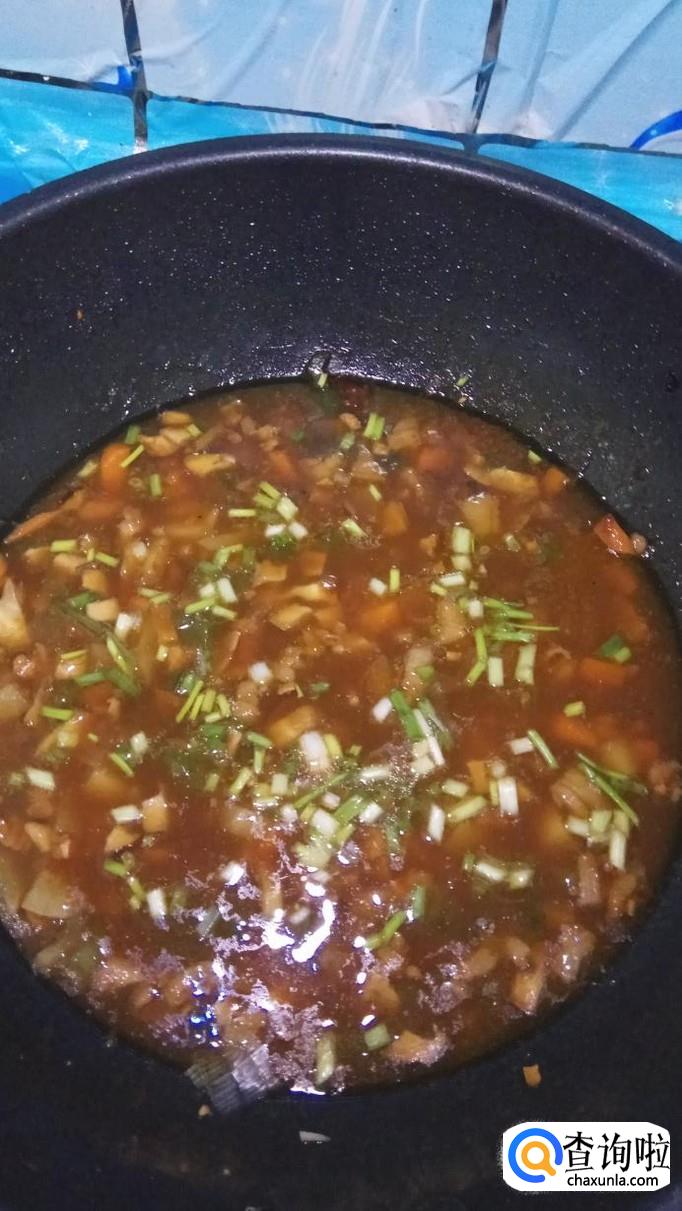 倒入一大碗清水,大火将水烧开,然后,再放入适量水淀粉,搅拌均匀。准备适量小葱,切碎后,撒在上面,酱就做好了。