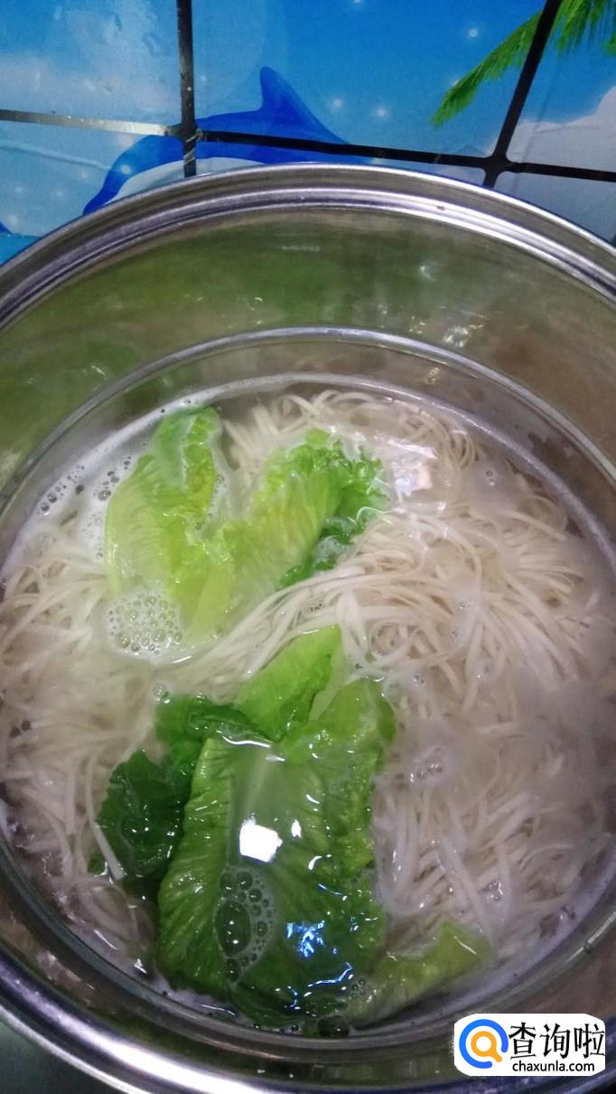 汤锅放入适量清水,大火将水烧开,然后下入适量面条,加入自己喜欢吃的青菜,面条煮熟之后捞出,放入碗中备用。