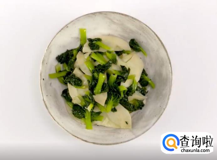 最后,将炒好的塔菜冬笋出锅装盘,就可以食用了。