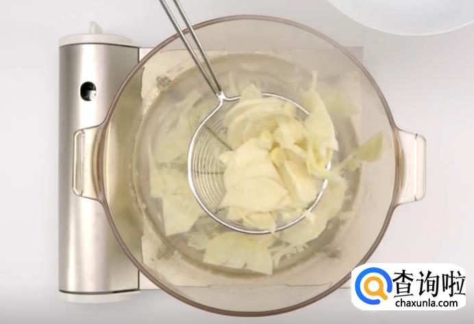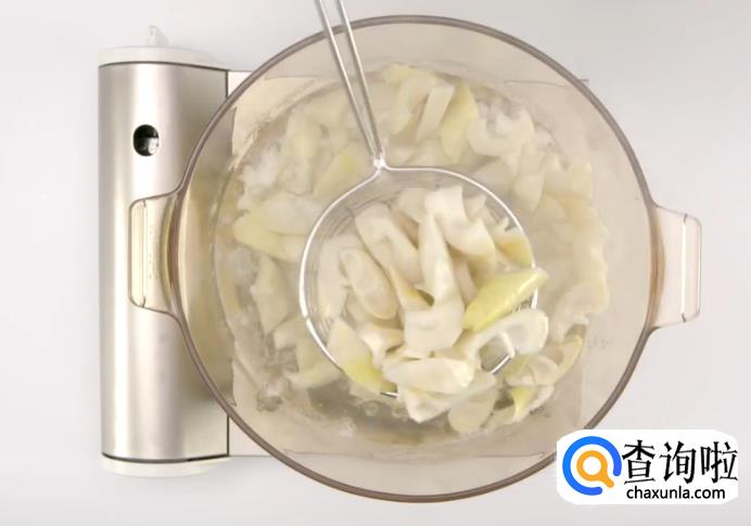 等水煮沸之后,将冬笋片捞出,把水沥掉。