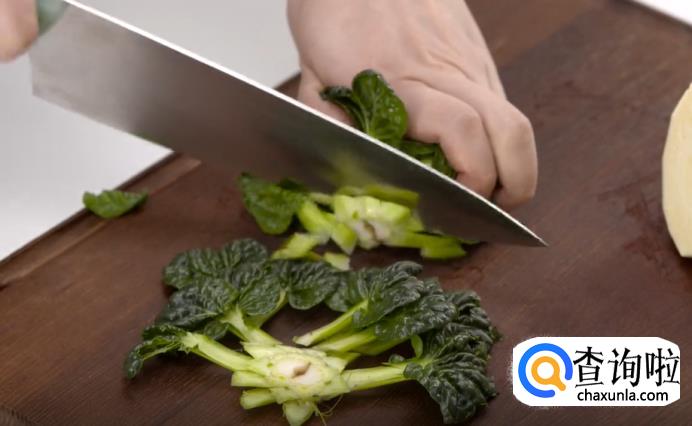 将塔菜洗干净,再用刀切掉塔菜的根部。