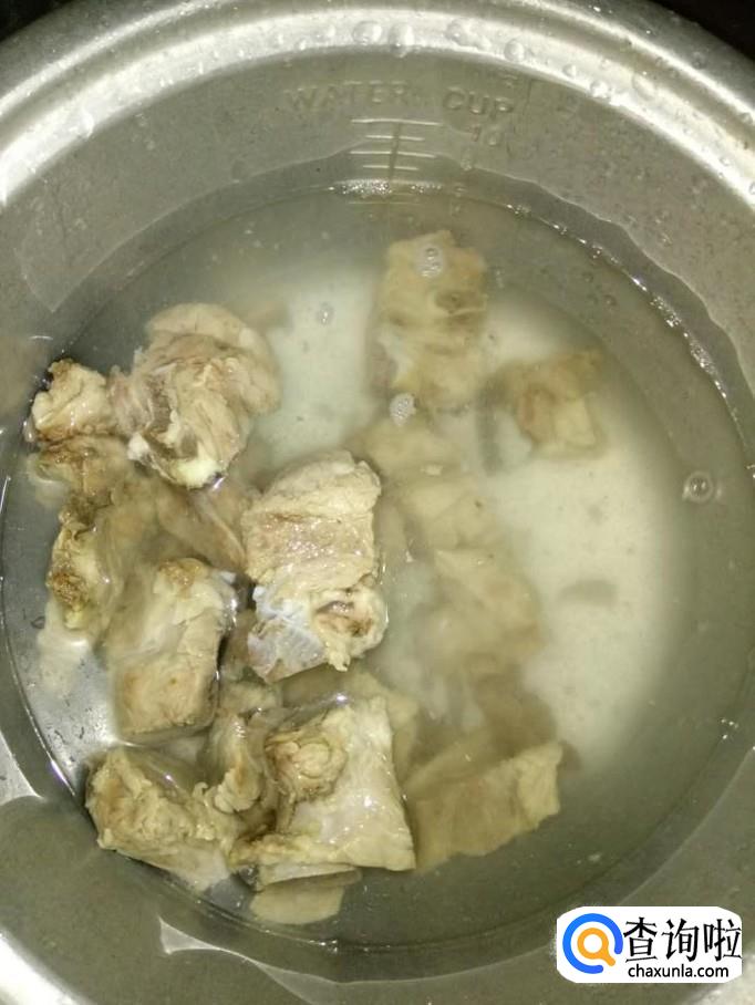 将排骨洗净后放入锅里,加入适量的水漫过排骨,煮开;再将煮好的排骨捞出,用凉水冲洗干净;