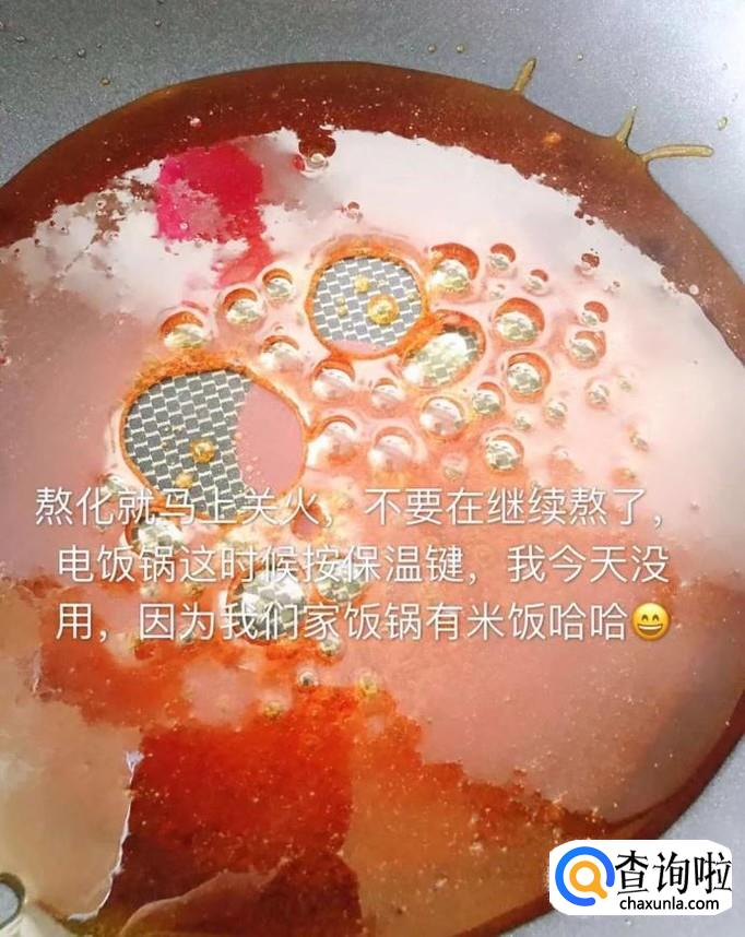 然后等到白砂糖和麦芽糖都完全融化混合在一起了就可以关火了,如下图所示。