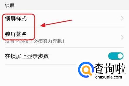 在安全和隐私界面,我们点击其中的“锁屏和密码”,这样我们就能看到“锁屏样式”和“锁屏签名”这两项了;