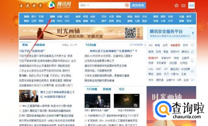 打开浏览器输入“腾讯”点击网页链接进入,然后找到腾讯首页点击进入