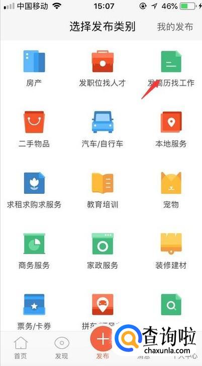 在更多功能里面第三个就是发布简历找工作,点击进去。