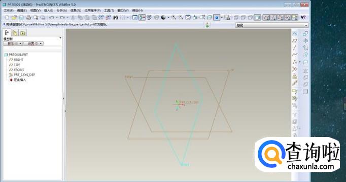 打开Pro/e软件,新建一个实体零件,使软件进入到三位建模状态,具体如下图所示。
