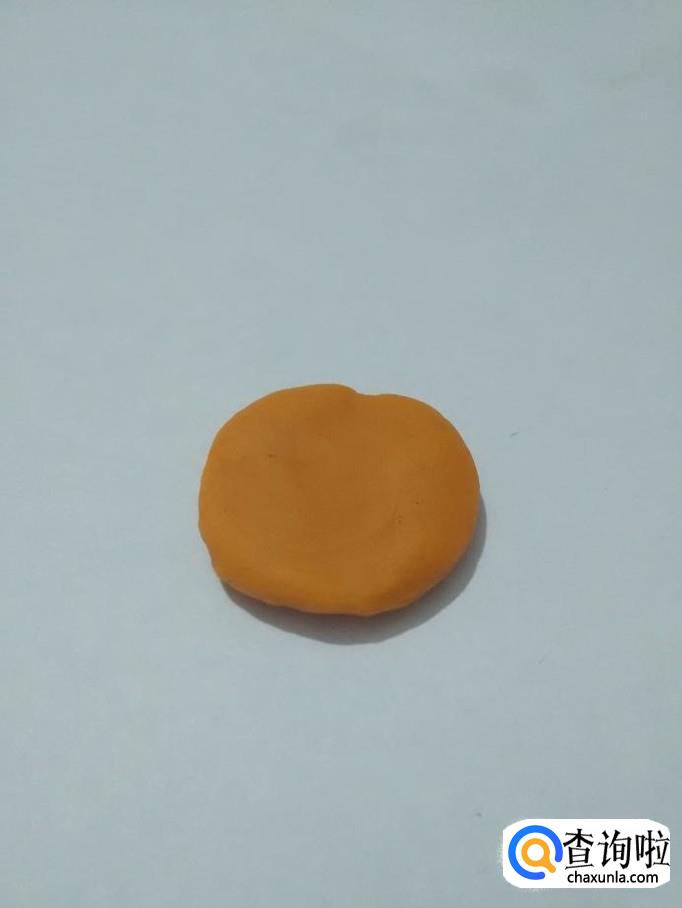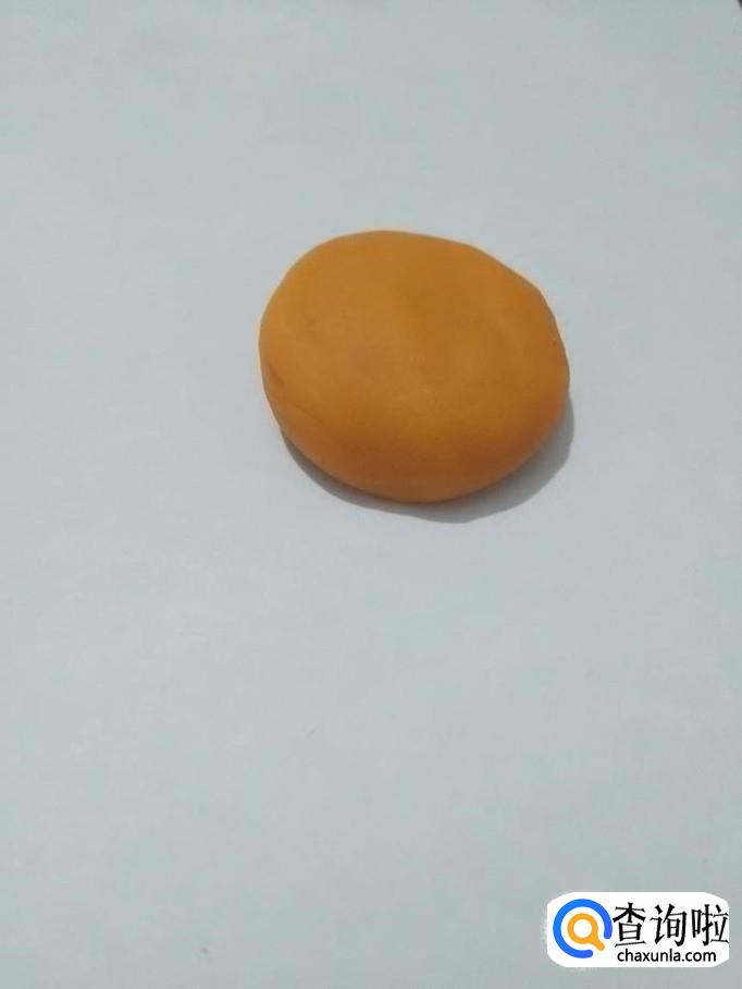 用桔色团一个圆球,再按成扁片,这个圆表示汉堡最下层的面包。