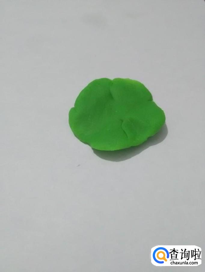 用浅绿色捏一个边缘不规则的圆片,粘在芝士酱上面,当作生菜。