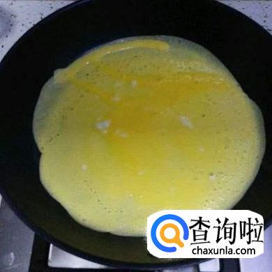 将鸡蛋打入平底锅中,蛋液均匀摊开。