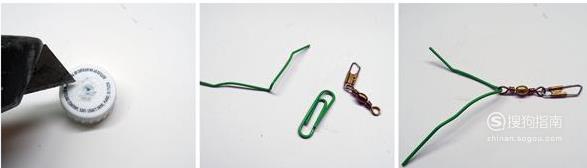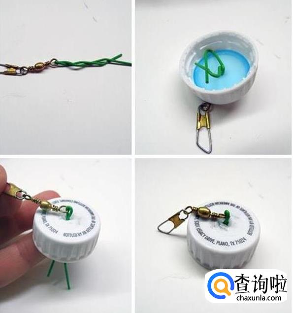 接下来做灯笼提手部分:在瓶盖的顶部切开一个小口;把铁丝穿过瓶盖,在瓶盖的底部旋转制作出环形末端。你也可以在铁丝上面挂一个漂亮的装饰链,如下图所示: