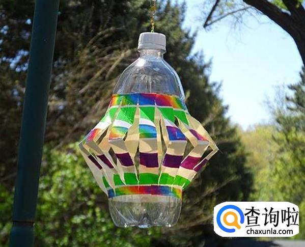 在做好的塑料瓶里面放入荧光棒或者带电池的小灯,这样塑料水瓶灯笼就做好了。