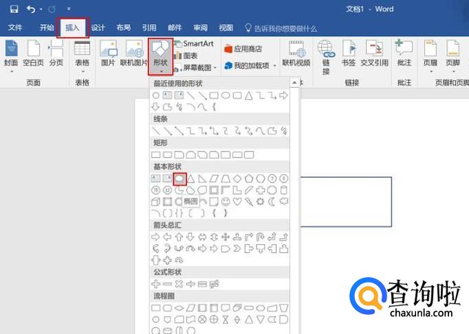 依次点击“插入”--“图形”,然后选择基本形状中的椭圆。