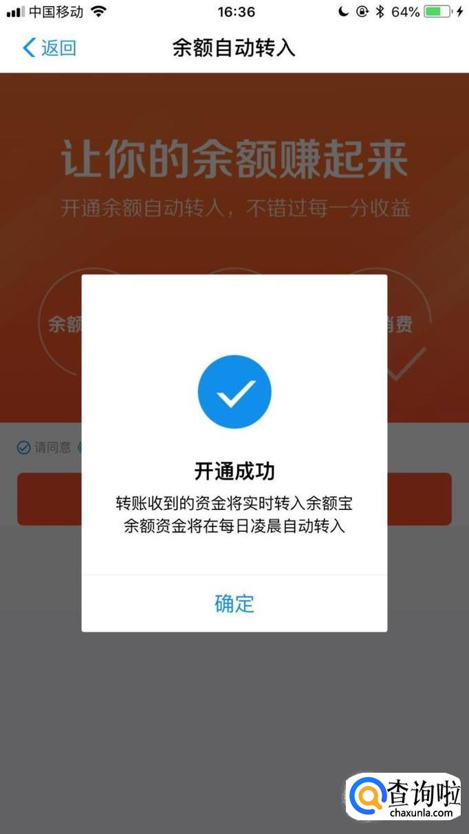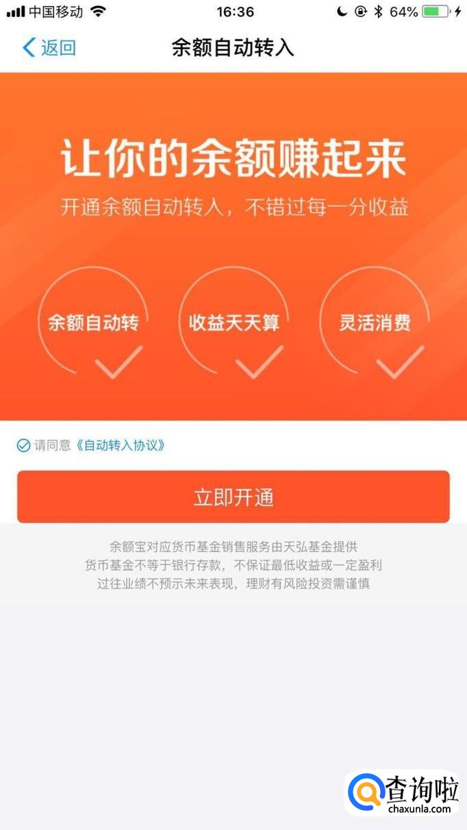 这样操作完成,我们的支付宝有余额就会自动转入到余额宝了。
