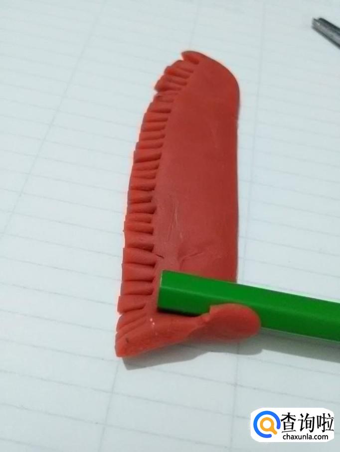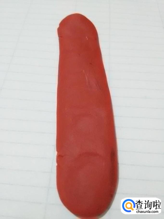 先将红色彩泥搓成长条,再按成长长的扁片儿。