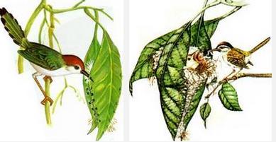 缝叶莺常常在公园、果园、树篱和灌木丛中筑巢。每年春天,雌雄缝叶莺纷纷寻找情侣,双双结伴,共同营建自己的安乐窝。