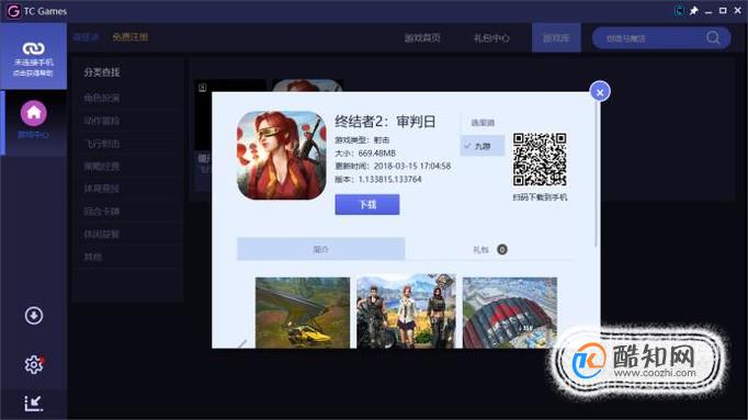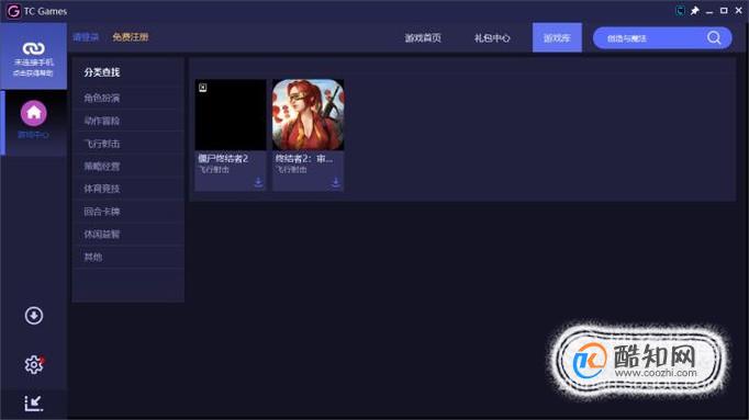再一次打开TC Games软件,就会显示连接成功,然后进入游戏中心,把终结者2装在手机上就好了。