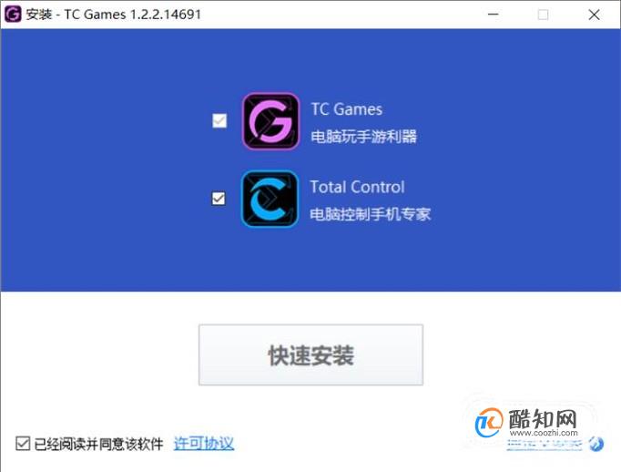 下载成功后,进行安装。我们可以根据自己的需求选择进行安装TC Games和Total Contol,或者默认下只安装TC Games。