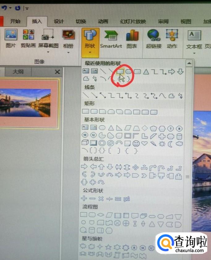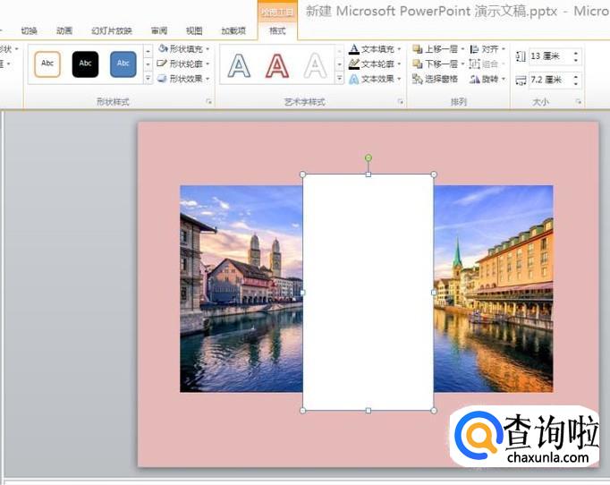 点击插入中的“形状”选择矩形框,插入之后,对矩形框的颜色进行调整,可根据自己的需要来调整,是矩形框位于图片中间,如下图所示。