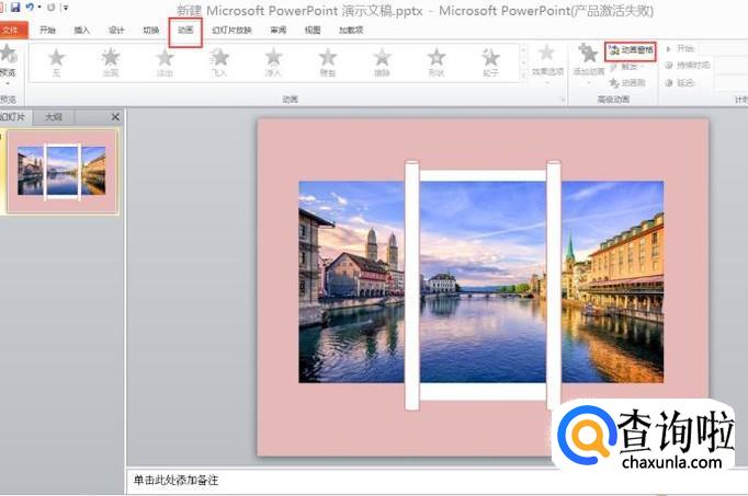 素材准备好后,开始对其设置动画,点击动画,再点击动画窗格。