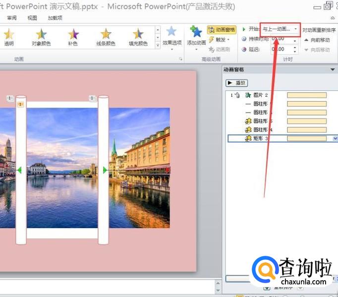 设置完动画后,注意设置后四个动画“与上一动画同时”,以上设置完成后就可以播放了。