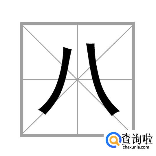 例如:“八”字,它的笔画顺序是:撇、捺;类似的字还有“人、入”等。