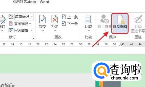 此外,我们还有一种加密方法,这次我们返回到文档页面,然后依次点击工具栏的“审阅”-“限制编辑”,如下图...