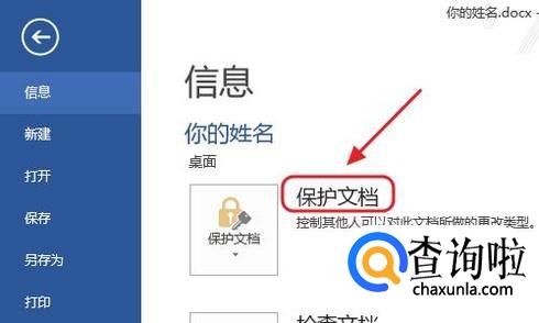 下图是一篇新建好文档,如果想要将其加密,那么第一种方法就是点击“文件”-“保护文档”,如图所示...