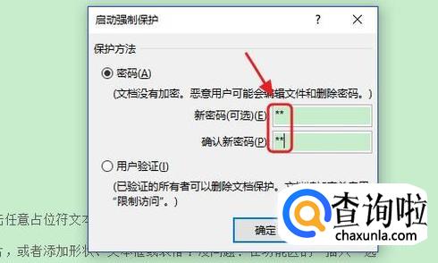 点击该窗口最下方的“是,启动强制保护”以后,系统同样会弹出一个对话框,要求我们输入保护文档的密码,加密以后的效果和前两种一样,大家可以根据自己的爱好选择一种加密方法;