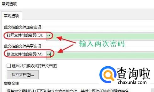 我们注意到工具的右侧是一个三角形下拉按钮,点击以后我们选择其中的“常规选项”,接着在常规选项对话框的最上方会要求我们输入密码,同样需要两项输入两次才行,这样也能实现给文档加密的效果;