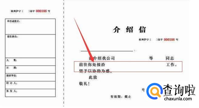 去接洽什么事情,目的是什么?也需要在上面写明,当然简单描述一下就可以,有时候介绍信是一式两份;