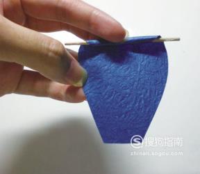 取刚卷好的一片小花瓣,用胶水包在刚做好的铁丝上。然后一片一片把8片小花瓣全包起来。