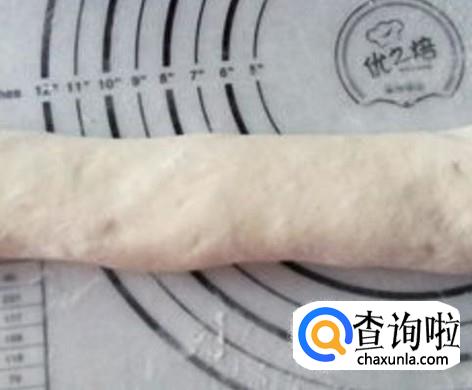 当面团被你做成长条形状之后,记得撒点面粉,然后用手轻轻地揉,让其变得圆润一些,然后根据你想要的包子大小,用刀切成一个个的面剂子。