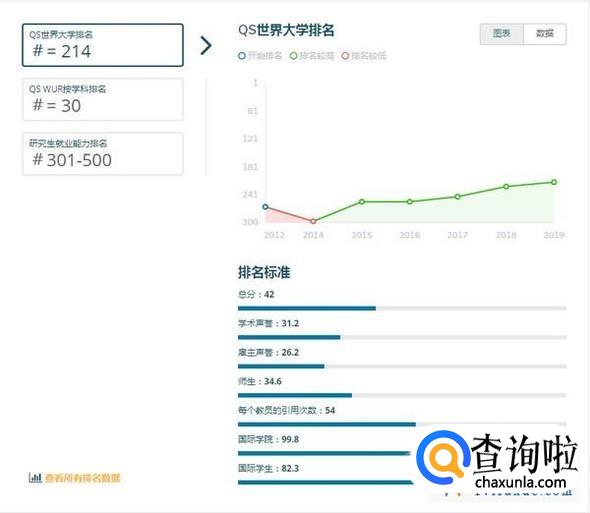 注:QS世界大学排名是世界公认最具影响力的全球性大学排名之一,主要评价指标为:学术领域的同行评价(40%)、全球雇主评价(10%)、单位教职的论文引用数(20%)、教师/学生比例(20%)、国际学生比例(5%)、国际教师比例(5%)