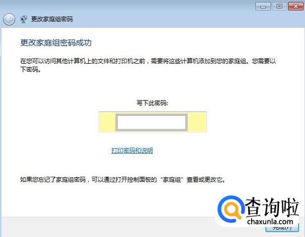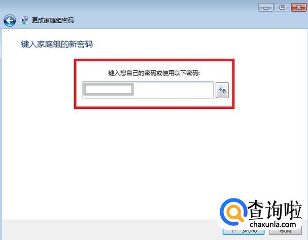 在输入框中键入家庭组的新密码后,点击右下角的“下一步”按钮。