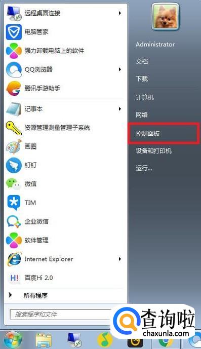 首先,打开桌面左下角的“开始”菜单,在右侧的列表中点击“控制面板”选项。