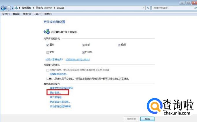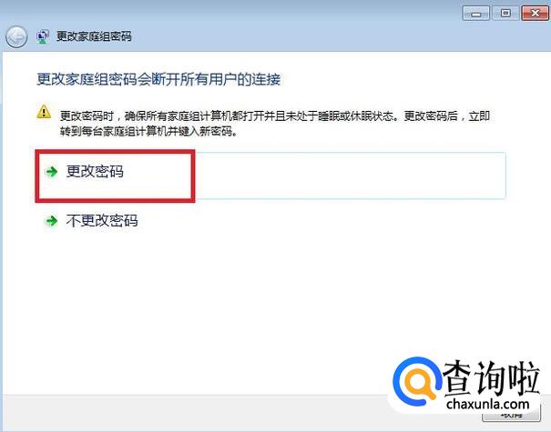 确保家庭组内的所有计算机处于开机且未处于休眠状态,点击“更改密码”选项。