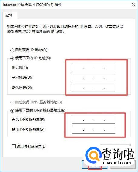 然后我们在里面输入IP地址、DNS地址等信息,之后点击确定就可以了,然后我们就可以上网了。