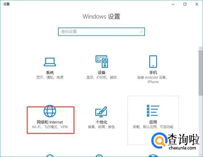 弹出的界面,我们点击网络和Internet;