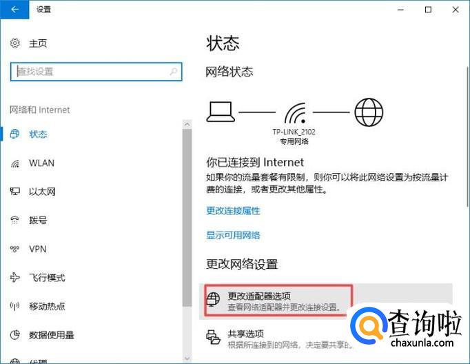 弹出的界面,我们点击更改适配器选项;